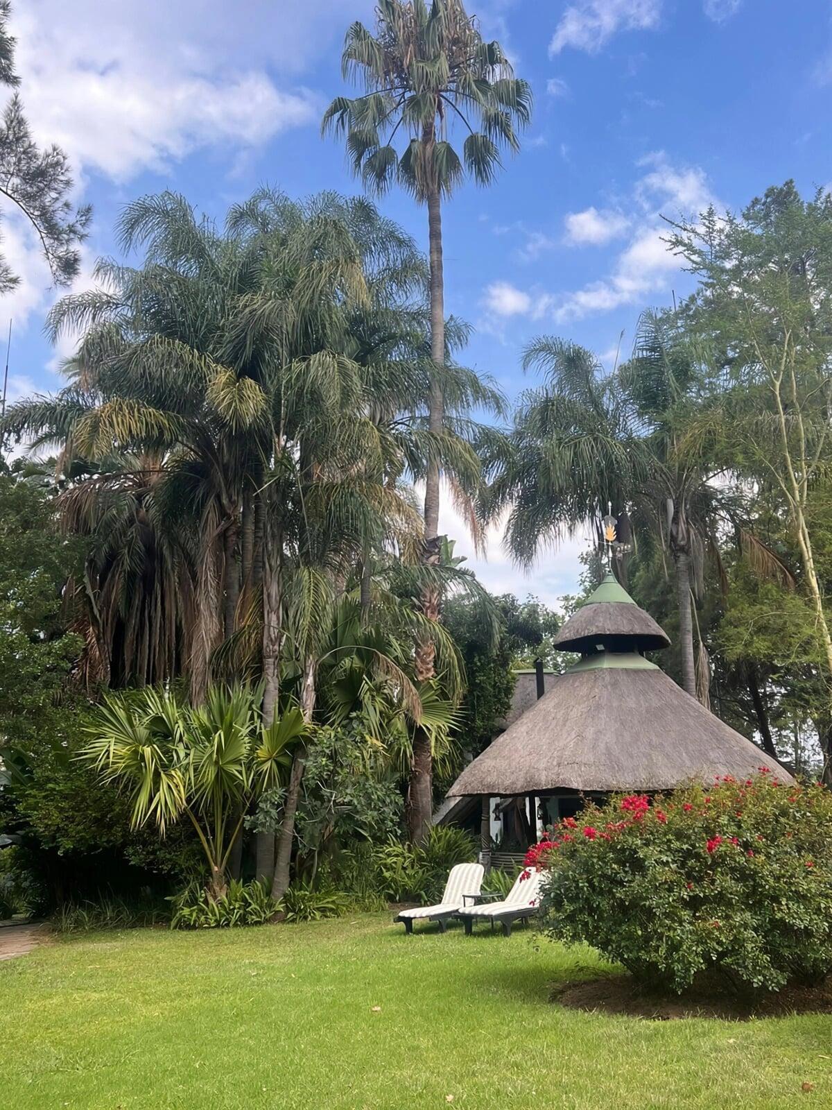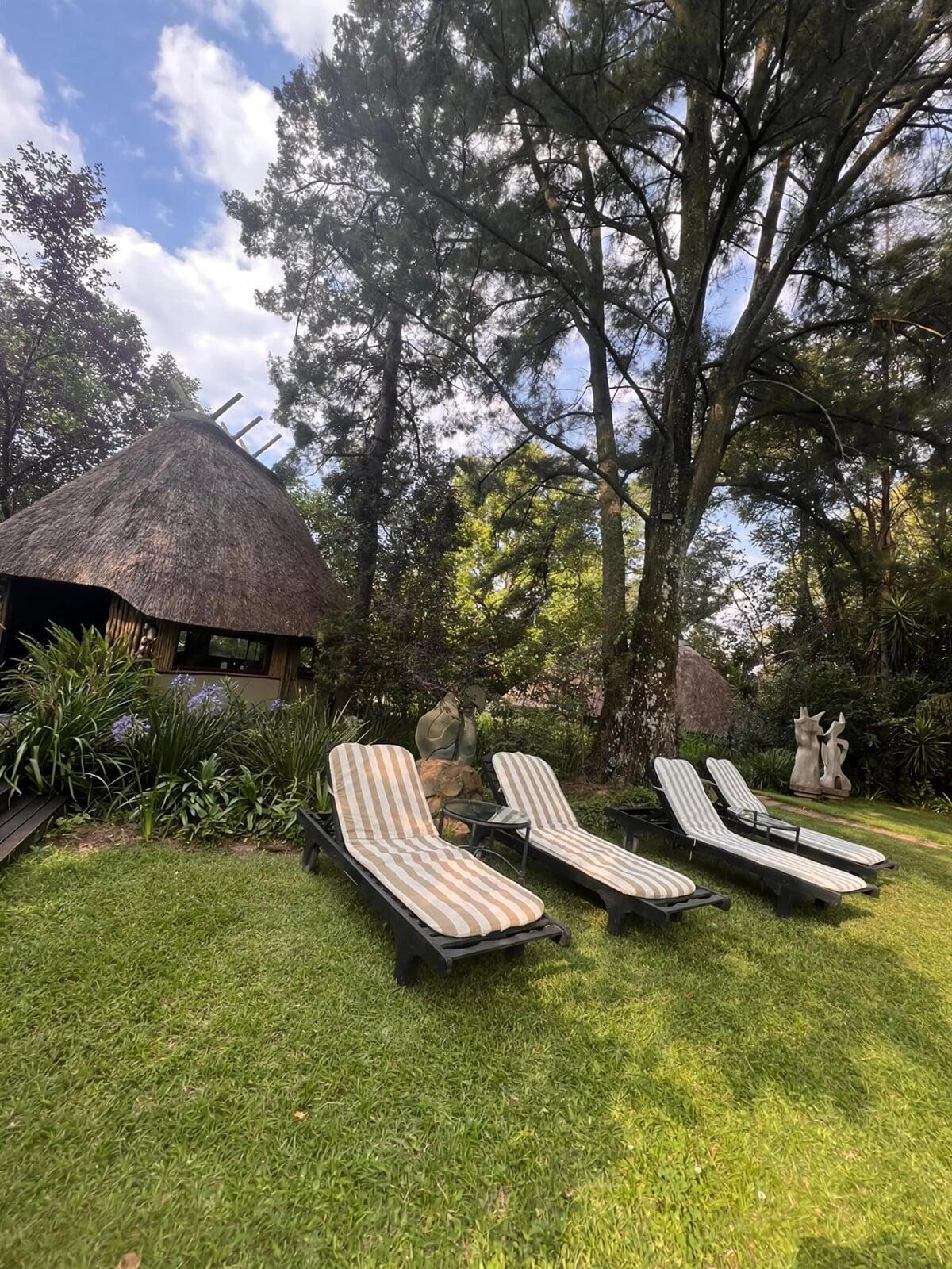 Sun-drenched thatch and textured stone walls offer a tranquil sanctuary amidst the rolling Highveld plains and lush, manicured gardens of Muldersdrift.